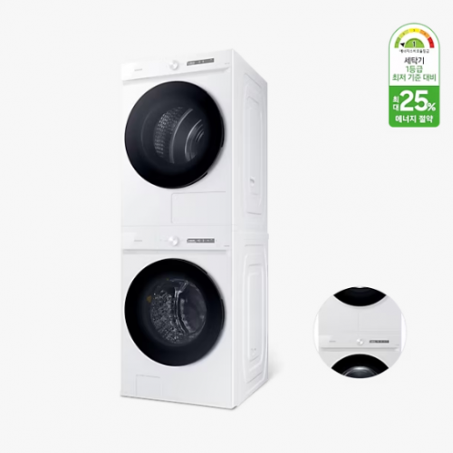 [삼성] BESPOKE 그랑데 AI 21kg + 17kg [올인원컨트롤] + 상단 설치 키트 ( WF21D17CWWC)