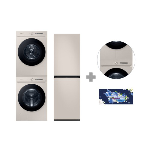 [삼성] 세탁 25KG + 건조 22KG + 에어드레서 5벌 / 스테킹키트, 아로마시트 세트 (WF2522DBBPF24E)